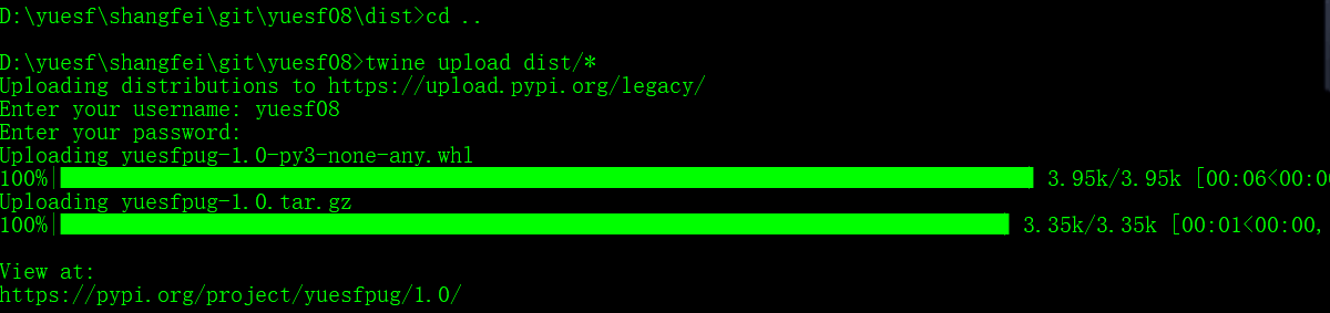 在pypi官网注册,上传代码时填写pypi账号、密码。