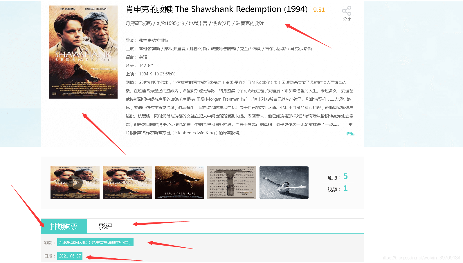 电影详情模块主要查看电影详情信息、以及在线选票功能或查看评价电影信息