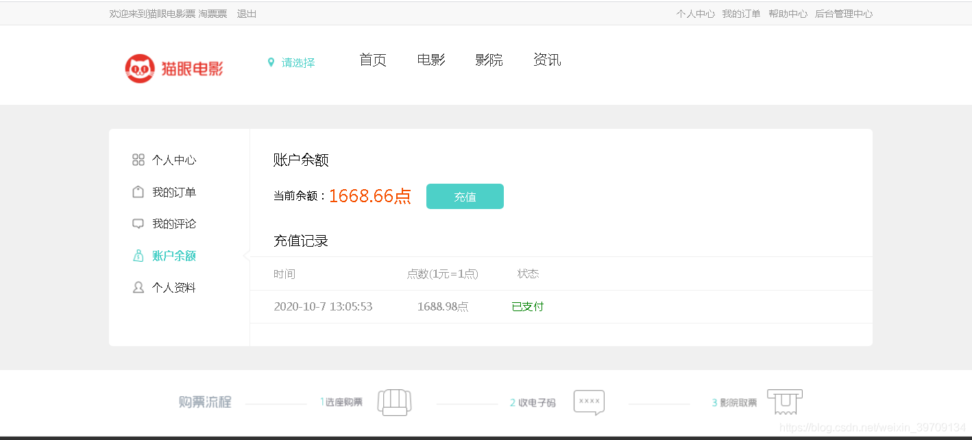 影院首页、轮播图展示、电影查看、热门影院、热门电影、热门资讯等、影院查看、电影资讯查看、电影信息详情查看、查看场次、电影座位选座购票、电影评论、订单支付、查看订单信息、帮助说明、个人中心、我的影评、我的账户余额等