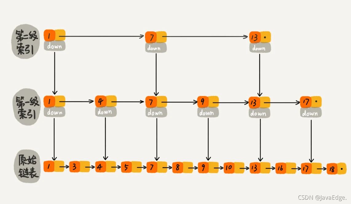 这种有多级索引的,可以提高查询效率的链表就是最近火遍面试圈的跳表。