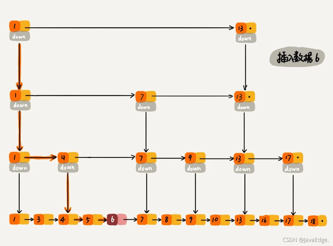 往跳表插入数据时,可以选择同时将这个数据插入到部分索引层中。