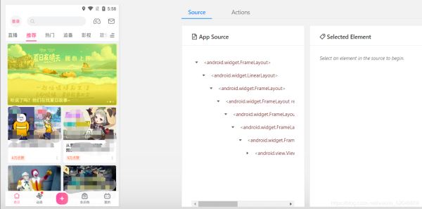 这里用的是某站的界面,appium连接之后就可以在这里操作,模拟器里面的界面也会随之而动。