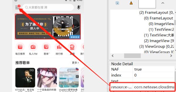 注:定位工具你随意,这里我打开的网易云,定位左上角的按钮,点击操作