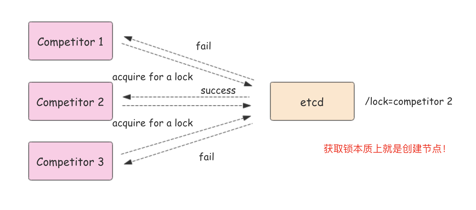 因为 etcd 使用 Raft 算法保持了数据的强一致性,某次操作存储到集群中的值必然是全局一致的,所以很容易实现分布式锁。锁服务有两种使用方式,一是保持独占,二是控制时序。