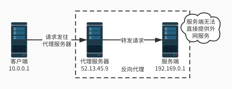 反向代理是指对服务端提供的代理服务,通常出于安全考虑,真正的服务端只有内网网络,无法直接提供对外服务,为此需要设置反向代理服务器,由代理服务器接收外网请求,然后再转发到内部服务器。从客户端角度看,代理服务器是提供服务的服务端,因此反向代理即代理服务端与客户端交互。比如租房遇到的二房东,我们签合同也是与二房东签订,但实际提供住房的是房主。