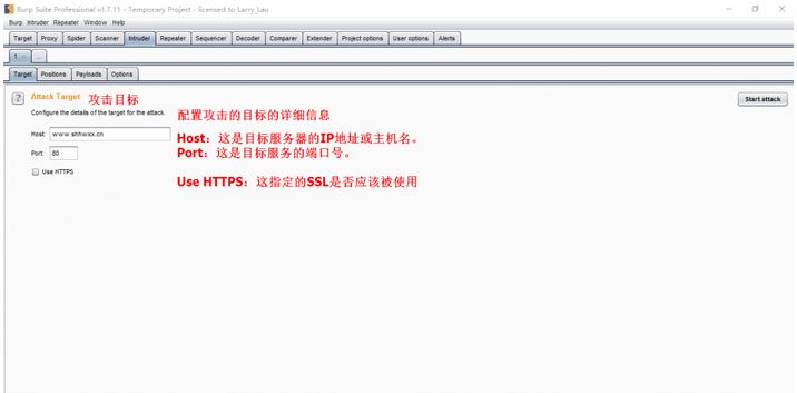 1:Target 用于配置目标服务器进行攻击的详细信息。