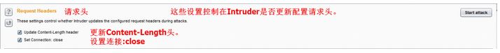 选项1:Request Headers这些设置控制在Intruder是否更新配置请求头。
