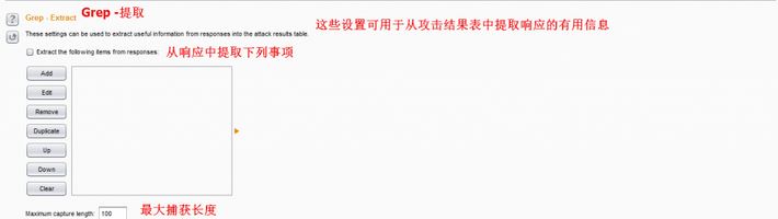 选项6:Grep – Payloads 这些设置可以用于包含已提交的有效负载的反射的标志结果项目。如果启用了此选项,BurpSuite会添加包含一个复选框指示当前负载的值在每个响应发现新的结果列。