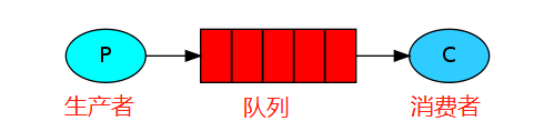 描述:一个生产者 P 发送消息到队列 Q,一个消费者 C 接收