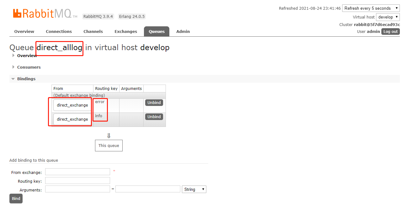 消费者只需要知道队列名就可以消费了,不需要Exchange和routingKey。