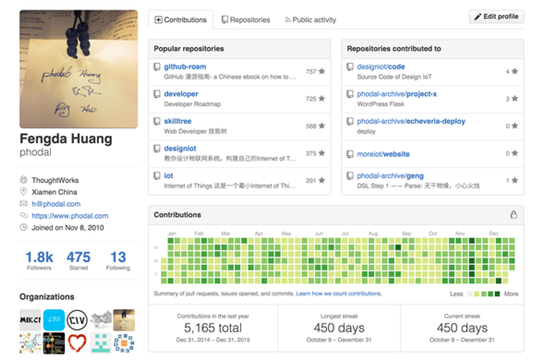 1.  Github多坚持了365天,一共有5165commits,欢呼·~~