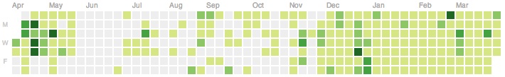 强迫每天不少于30分钟的写代码时间。(否则的话就真的很难写出有意义的代码,特别是你还得记起前一天你是从哪里离开的。)工作日我能投入的时间不是很多(通常不超过1小时,但都超过30分钟),但在周末,有时我会工作一整天。