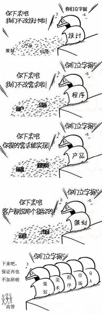 注:以上场景已极度夸张,实际生产生活中码农和PM是和睦友好的相亲相爱的一家人