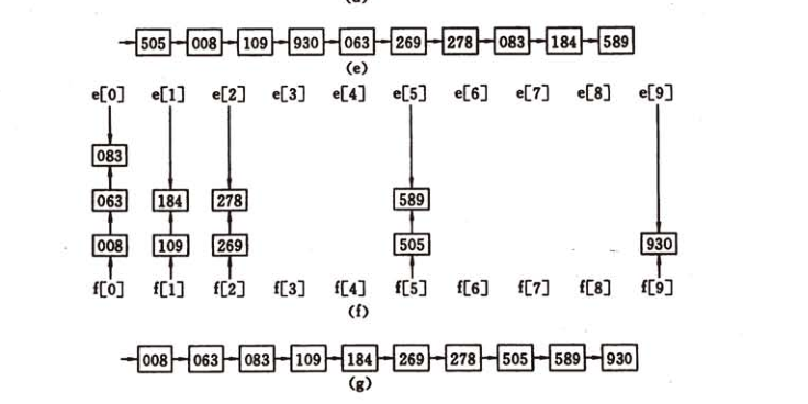 基数排序又是一种和前面排序方式不同的排序方式,基数排序不需要进行记录关键字之间的比较。基数排序是一种借助多关键字排序思想对单逻辑关键字进行排序的方法。所谓的多关键字排序就是有多个优先级不同的关键字。比如说成绩的排序,如果两个人总分相同,则语文高的排在前面,语文成绩也相同则数学高的排在前面。。。如果对数字进行排序,那么个位、十位、百位就是不同优先级的关键字,如果要进行升序排序,那么个位、十位、百位优先级一次增加。基数排序是通过多次的收分配和收集来实现的,关键字优先级低的先进行分配和收集。