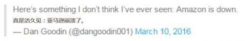 3月11日消息,据国外媒体报道,亚马逊网站于今日发生了20分钟的服务中断事故,此次事故将造成巨大的经济损失。美国当地时间下午2:20左右,用户在试图登录亚马逊网站时接受到一个错误提示:“对不起,在我们处理你的请求时发生了一个错误。我们正在尽快处理这个错误。”亚马逊这一大型服务器宕机事故在美国网民和网站消费者中引发了热议,许多网民在Twitter表达自己的不满情绪。