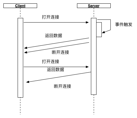 但是这种方式会有非常严重的问题,就是需要不断的向服务器发送消息询问,如果有1w个商家打开了浏览器,采用10s轮询的方式,则服务器则会承担1000 的QPS,这1w个商家可能只有10个有订单通知;这种方式会对服务器造成极大的性能浪费。