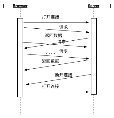 客户端打开一个到服务器端的 AJAX 请求然后等待响应;服务器端需要一些特定的功能来允许请求被挂起,只要一有事件发生,服务器端就会在挂起的请求中送回响应并关闭该请求。客户端 JavaScript 响应处理函数会在处理完服务器返回的信息后,再次发出请求,重新建立连接;如此循环。