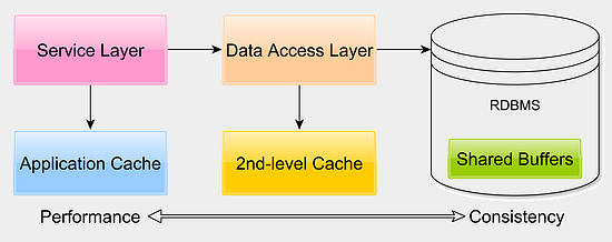关系型数据库使用了很多的内存缓冲结构体来避免大量的磁盘访问,但是我们往往忽略了数据库缓存。我们可以通过调整数据库查询引擎,将更多的内容留于内存中以避免磁盘查询最终明显的减少响应耗时。应用层的缓存则利用高速副本的方式来保证低响应时间。而Second-Level缓存能够有效减少读写事务的响应时间,特别是在主从复制架构中。根据不同的应用取钱,Hibernate提供了 READ_ONLY, NONSTRICT_READ_WRITE, READ_WRITE, 以及 TRANSACTIONAL这几种方式。
