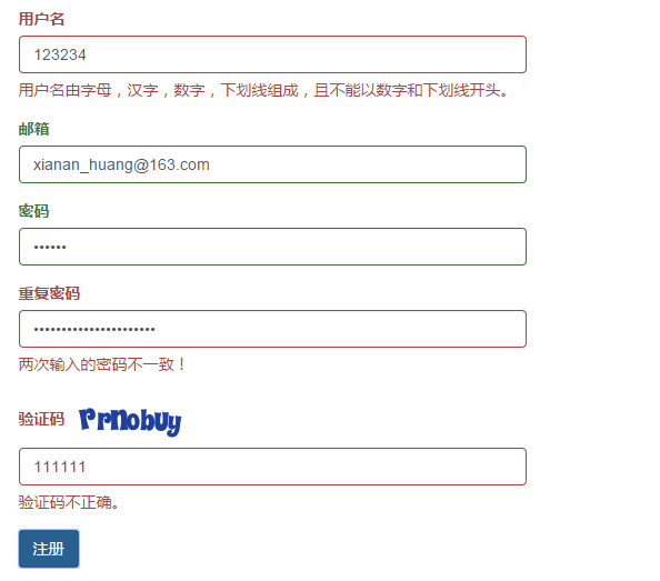 1. 用户名没有做严格的限制,类似“111”,“123456”,“_____111”这样的的用户名都是被允许的,那么如何限制用户输入我们所希望的用户名呢?