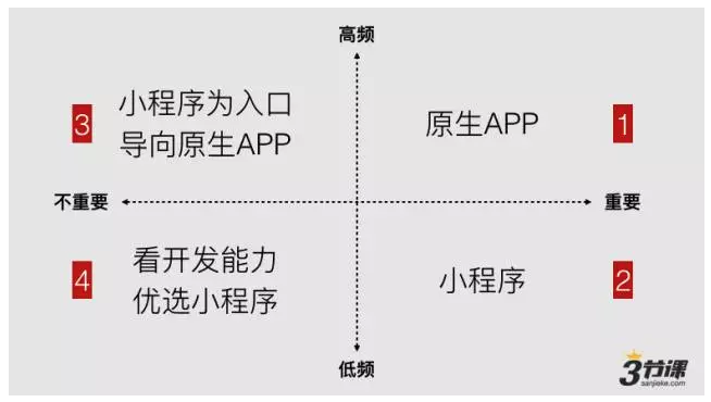 这一块就不细讲了,毕竟不是我擅长的,借用网上的分析,用两张图片告诉你微信小程序的适用场景。