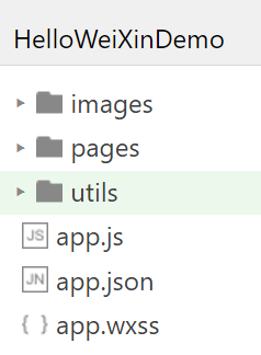 在图一的文件结构中,还有三个文件夹目录:images,pages,utils,这种形式就类似我们开发中分包的做法(其实就是)-将具有类型性质的文件或者类分目录存放,这样便于维护项目。