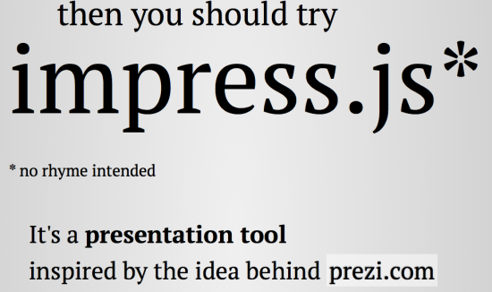 这个工具用了纯HTML做主题和框架,CSS做切换效果,还有一个简单的JS MVC框架来展示幻灯片。这个工具最适合用来展示你的数据。