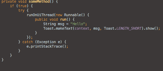 描述:该操作会移除周围的代码,它可能是一条if语句,一个while循环,一个try/catch语句甚至是一个runnable语句。该操作恰恰和包裹代码(Surround With)相反。