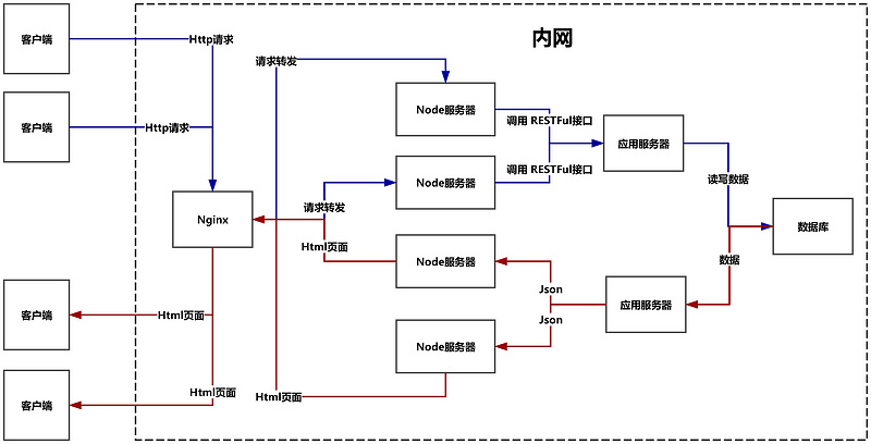 2、反向代理能够解决跨域引起的问题,因为Nginx,Node,应用服务器,数据库都处于内网段中。