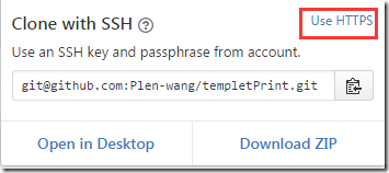 这是我6年前的开源项目,套打组件。拿这个做例子,红色范围内的地址就是ssh的连接地址。你可以通过”Use HTTPS”切换使用https连接地址。