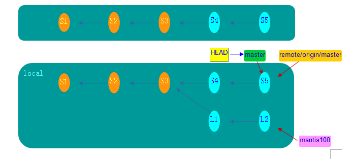 当remote/origin/master已经通过fetch命令更新了以后,在mantis100分支上: