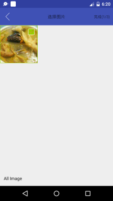效果如上图,点击加号弹出选择框,目前提供了两种形式,一个如图所见的PopupWindow,另一个是MaterialDialog,选择拍照或者从图库获取,从图库获取后就进入图二,选择完之后就图三或图四 这里因为很多项目需要不一样,所以特别封装了 :图三的情况:上传成功之后进度提示隐藏和失败重发提示隐藏,或者是批量上传不需要进度提示的和失败重发的。图四的情况:选择完后遍历上传,有可能出现某一张上传失败。点击图中的重发按钮触发重发的事件当然如果你觉得删除和重发的icon难看,完全可以自己取代替换它,删除的图标叫icon_photo_view_cancel,重发的图标叫icon_photo_view_resend,只需要按照这个命名,然后放在自己项目底下的mipmap包,控件会自动替换,不需要去set什么。