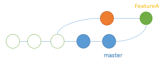 它会把整个featureA的分支直接移到现在master分支的后面: