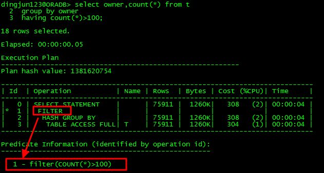 FILTER操作是执行计划中常见的操作,这种操作有两种情况: