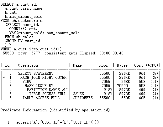 如果对标量子查询进行优化,一般就是改写SQL,将标量子查询改为外连接形式(在约束和业务满足的情况下也可改写为普通JOIN):