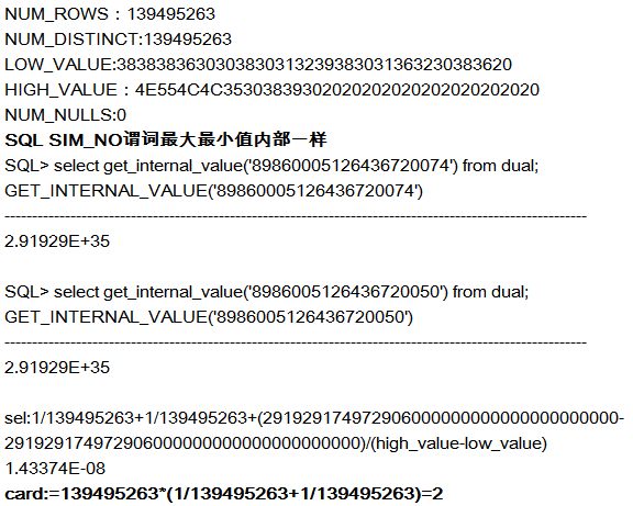 Oracle内部计算选择性都是以数字格式计算,因此,遇到字符串类型,会将字符串转换成RAW类型,再将RAW类型转换成数字,并且ROUND到左起15位,这样对于转换后的数字很大,可能原来字符串相差比较大的,内部转换后的数字比较接近,这样就会引起选择性计算不准确问题。如下例: