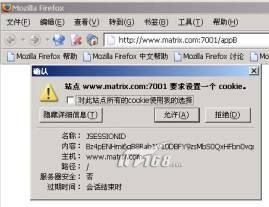 排除session正常失效的因素之外,服务器本身的可能性应该是微乎其微的,虽然笔者在iPlanet6SP1加若干补丁的Solaris版本上倒也遇到过;浏览器插件的可能性次之,笔者也遇到过3721插件造成的问题;理论上防火墙或者代理服务器在cookie处理上也有可能会出现问题。