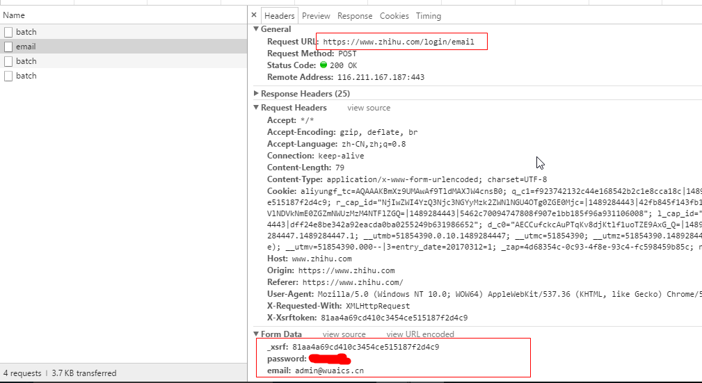 把_xsrf和自己的账号及密码一起发送(模拟登录)