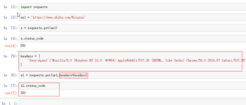 至于为什么会返回500状态码呢?是因为我们用程序来访问知乎被发现了...