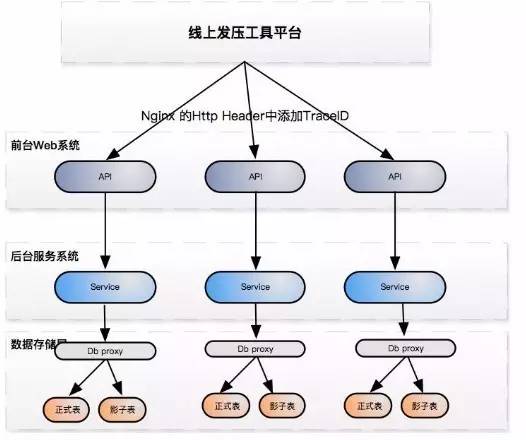 如上图,是产生流量的线上发压平台。和淘宝浏览某个商品行为相比, 滴滴流量发起较复杂 ,涉及时间、地理位置等多维度。