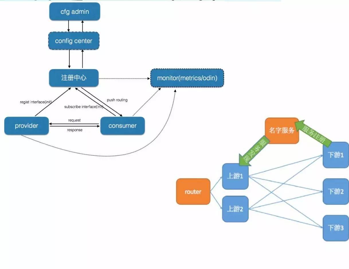目标是把一些服务之间的调用能够通过规范化方式串联起来。上下游通过名字服务,从上游和下游端口解耦,名字服务需要在全公司统一且名字唯一。