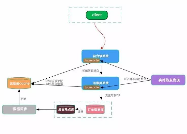前台系统到后台系统,整个请求是有链路的,一个请求从发起最终到服务端,到数据库层中间需经历多层,过程中存在时间差。特定情况下,会有 1-2 秒延时。利用这一点,当前端请求自导到接受层时,做实时热点侦测,当发现接收层发生变化,可及时通过认证等手段对这个请求做标记,把热点数据记录下来。