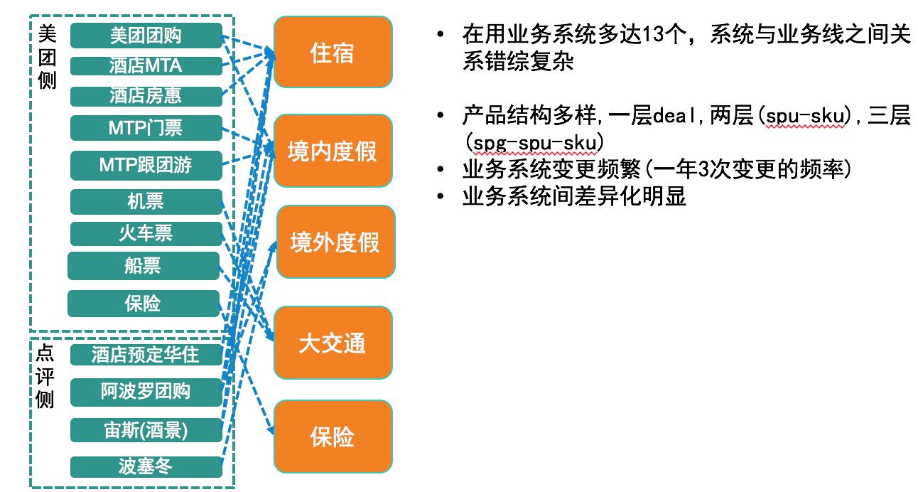 在第二代数仓模型层次运转一段时间后,我们的业务又迎来了一个巨大的变化,上海团队和我们融合了,同时我们酒旅自身的业务系统重构的频率相对较高,对我们的数仓模型稳定性造成了非常大的影响,原本的维度模型非常难适配这么迅速的变化。下图就是我们数仓模型当时所面临的挑战: