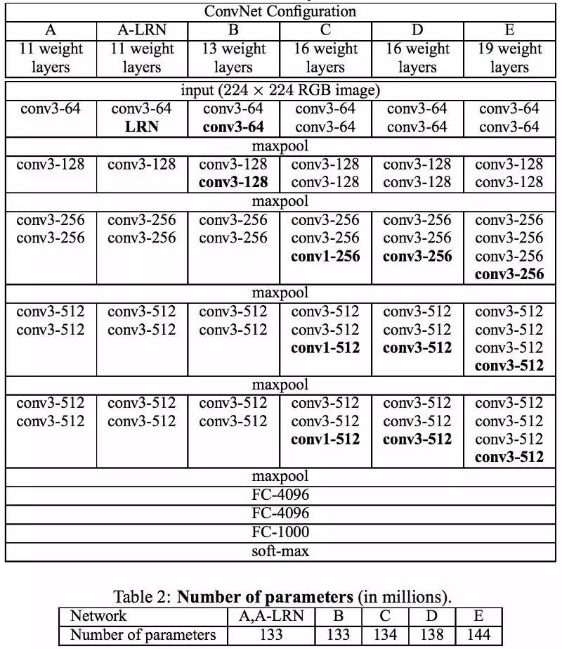 VGG 网络利用多重 3*3 卷积层来呈现复杂的特性。请注意 VGG-E 模块 3、4、5 的数值分别是 256*256 和 512*512,在序列里多次使用 3*3 过滤器来提取更为复杂的特性以及这些特性的组合。实际上,这就像是利用3层获得了大的 512*512 分类器。这就是卷积!这显然是大量参数以及学习力共同作用的结果。但是训练这些网络非常困难,而且必须把这些网络分解成更小的神经网络,对他们进行逐层训练。这么做的原因就是缺少强力有效地办法来调整模型或者在某种程度上是对利用大量的参数来提高大量搜索空间的办法予以限制。