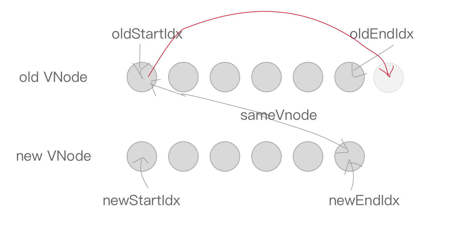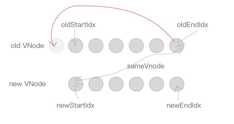 如果oldEndVnode与newStartVnode满足sameVnode,即sameVnode(oldEndVnode, newStartVnode)。