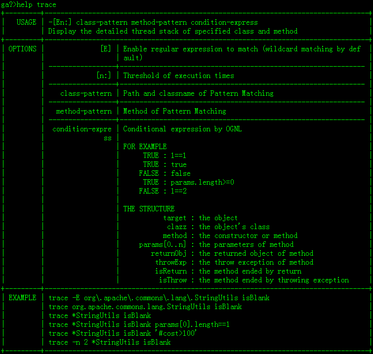 (5)使用 trace命令 跟踪指定类、方法的执行时间、参数、返回值情况;