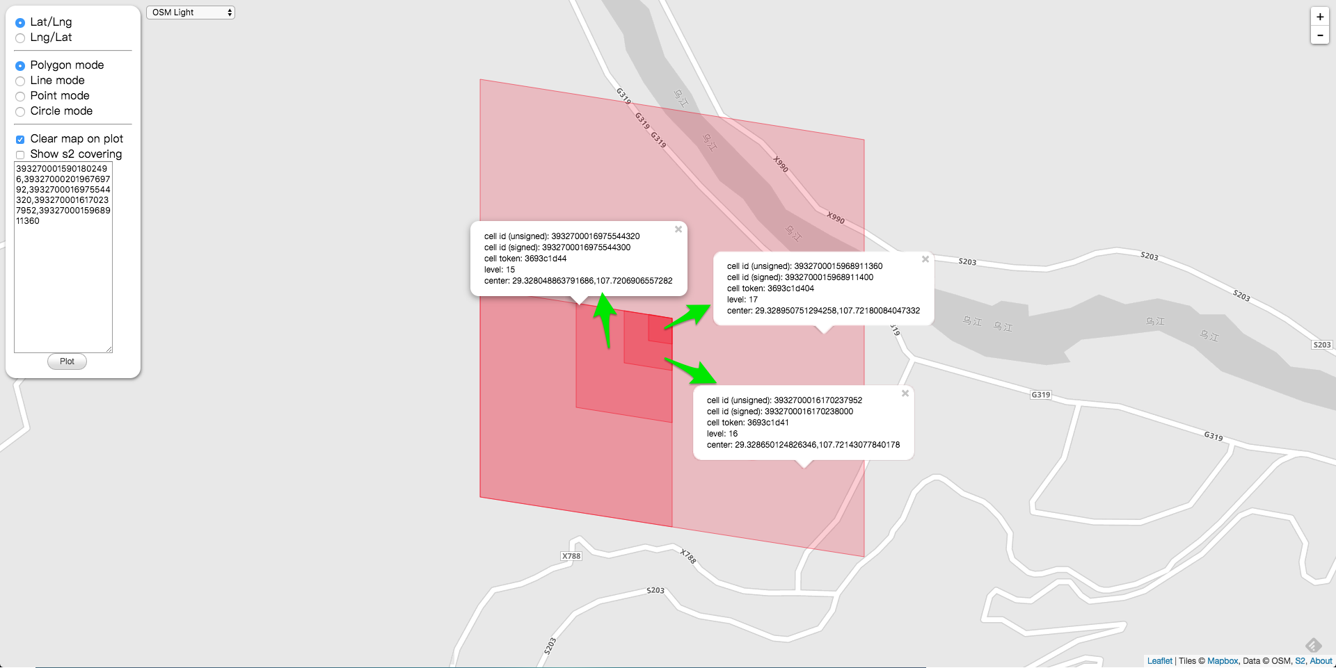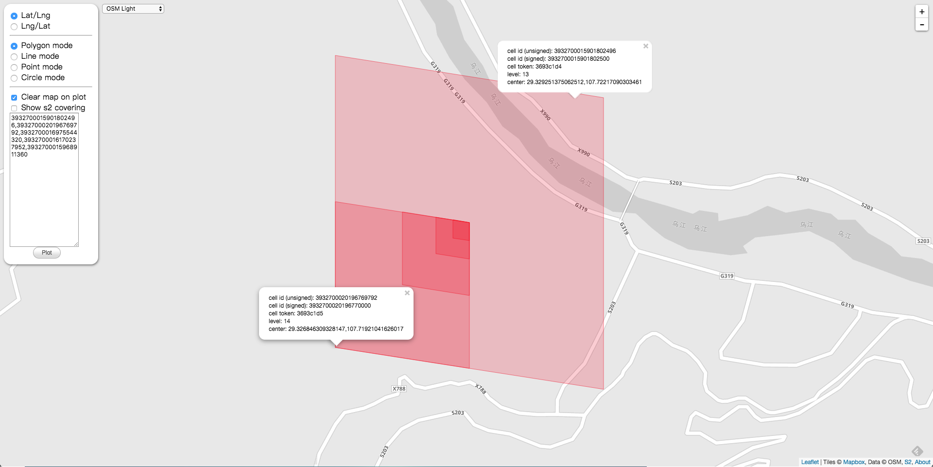 在上面的例子中,我们挑选不存在祖先关系的两个 Level 的 CellID。