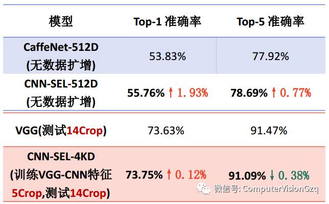 在最后一个全连接层参数数量仅为原模型 9.12% 的情况下:Top-1和Top-5准确率分别提高了 0.72% 、 0.32% 。