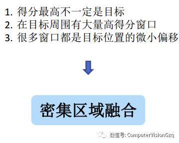 密集区域指在同一个目标附近大量类似的候选区域,可以看作同一目标位置的偏移。
