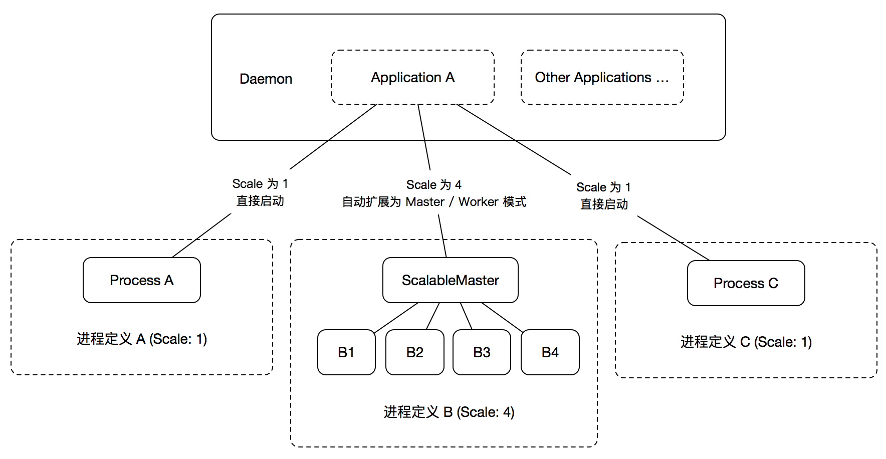 Scale 这个值在 Pandora.js 中很重要,用户并不需要指定哪个进程,需要用 Cluster 模块进行伸缩(使用 Master / Worker 模型),哪个进程直接启动。