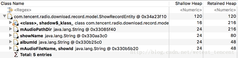 3.1 和 3.2 都会存储节目信息,而节目信息相关的jce结构都比较大,通过MAT,可以看到 Show:12K, Album:10K, 一个ShowInfo同时包含了上面两种数据结构。